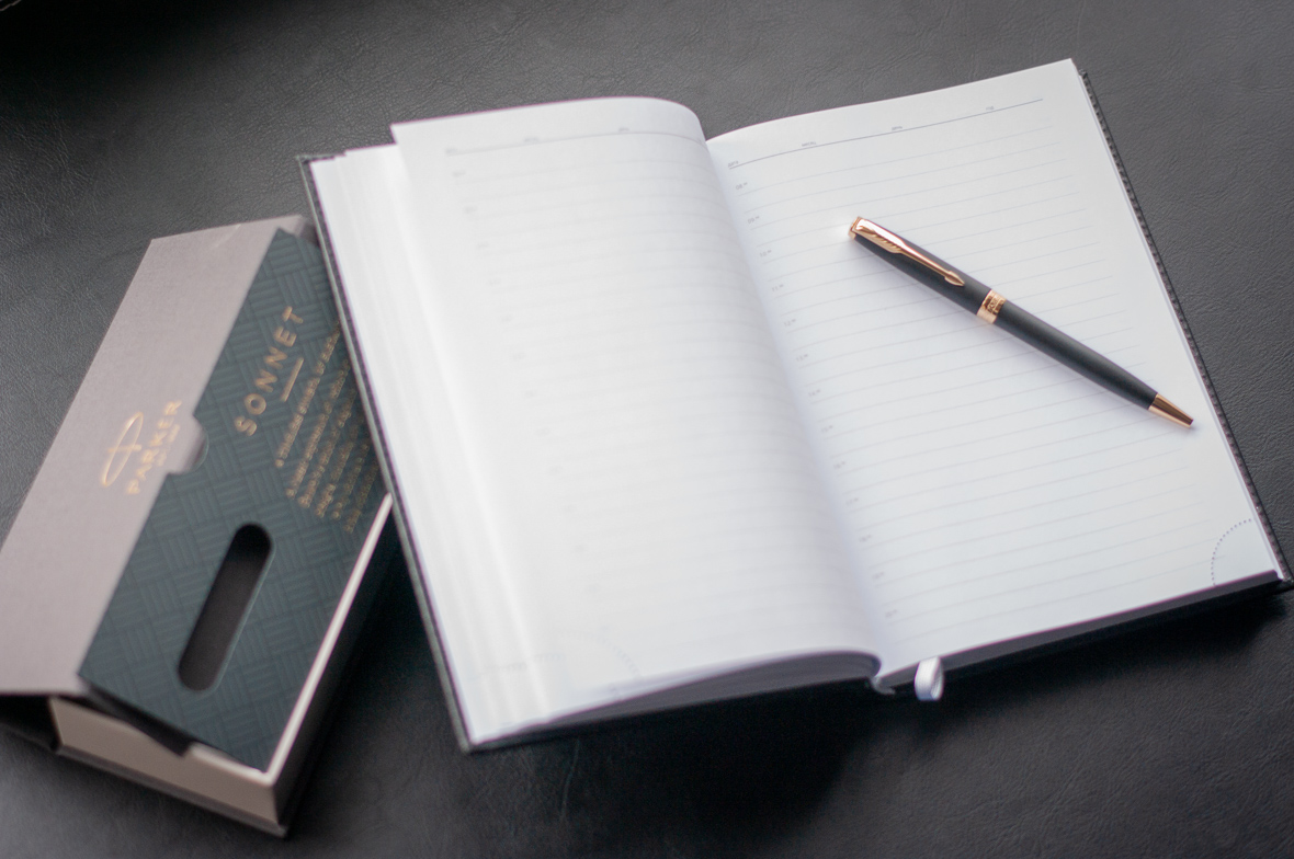 Подарочный набор VIP Ежедневник и ручка Parker Sonnet Matte Black GT от официального дилера Parker в Магнитогорске. Вы можете дополнительно заказать гравировку, которая подчеркнет Вашу оригинальность и придаст памятность статусному подарку. Все ручки Паркер поставляются в фирменном футляре.