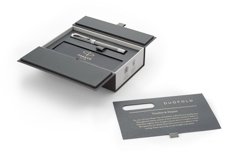 Ручка роллер Parker Duofold Prestige Ruthenium Chiselled CT от официального дилера Parker в Магнитогорске. Вы можете дополнительно заказать гравировку, которая подчеркнет Вашу оригинальность и придаст памятность статусному подарку. Все ручки Паркер поставляются в фирменном футляре.