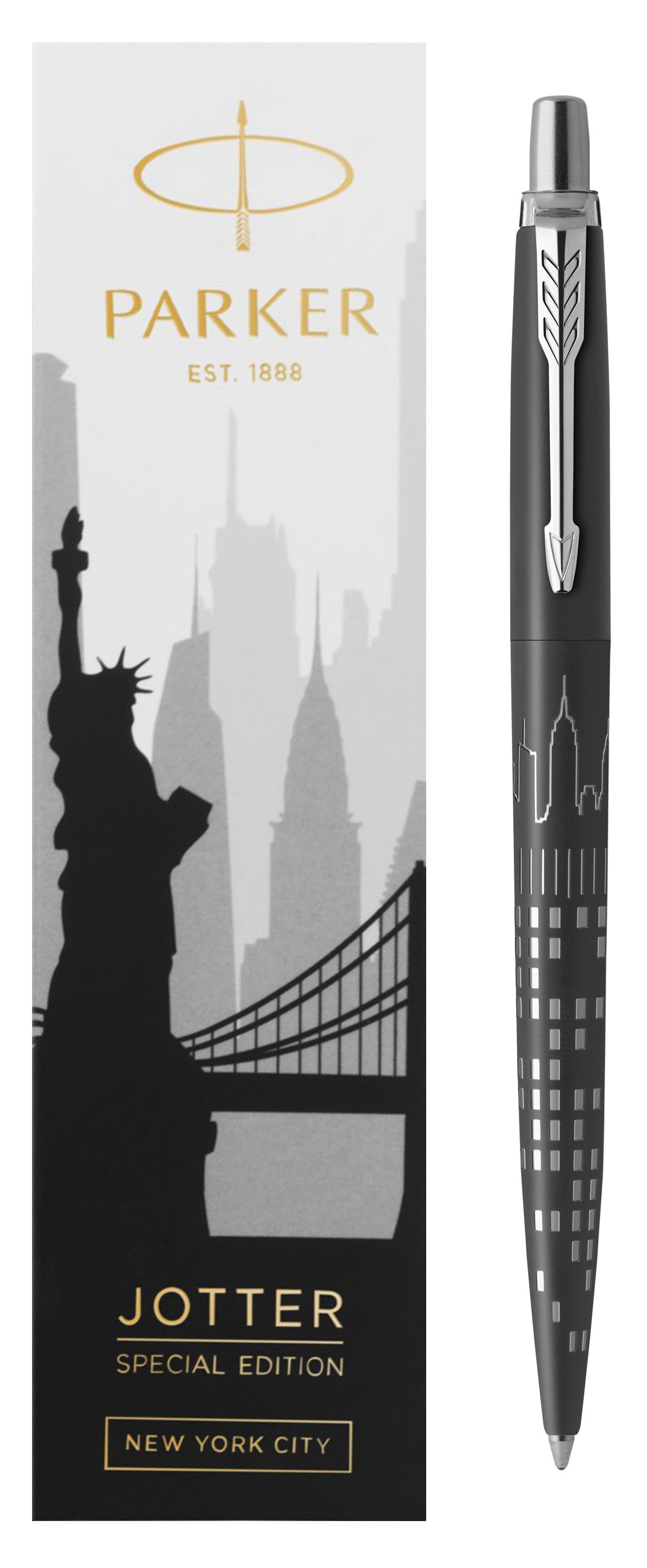 Ручка шариковая Parker Jotter New York Black CT от официального дилера Parker в Магнитогорске. Вы можете дополнительно заказать гравировку, которая подчеркнет Вашу оригинальность и придаст памятность статусному подарку. Все ручки Паркер поставляются в фирменном футляре.